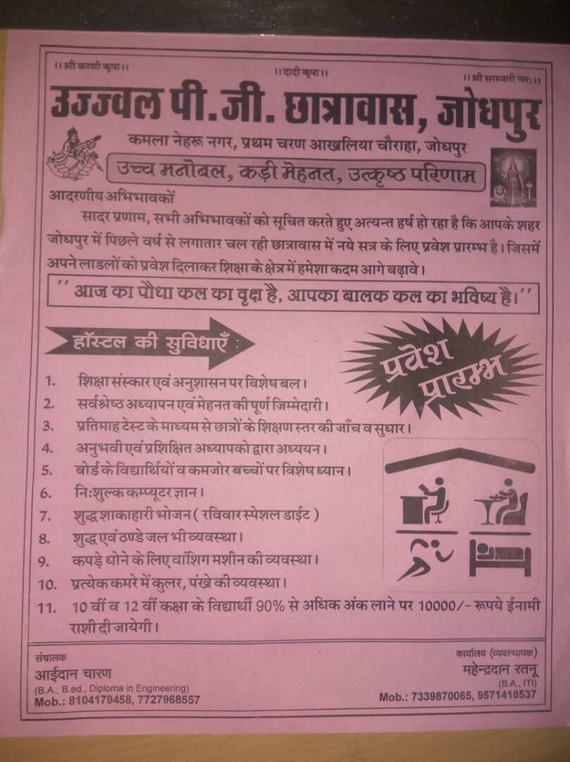 | Three Sharing | Non A/C | 4500 | Per Month |